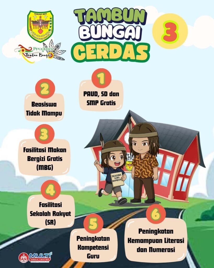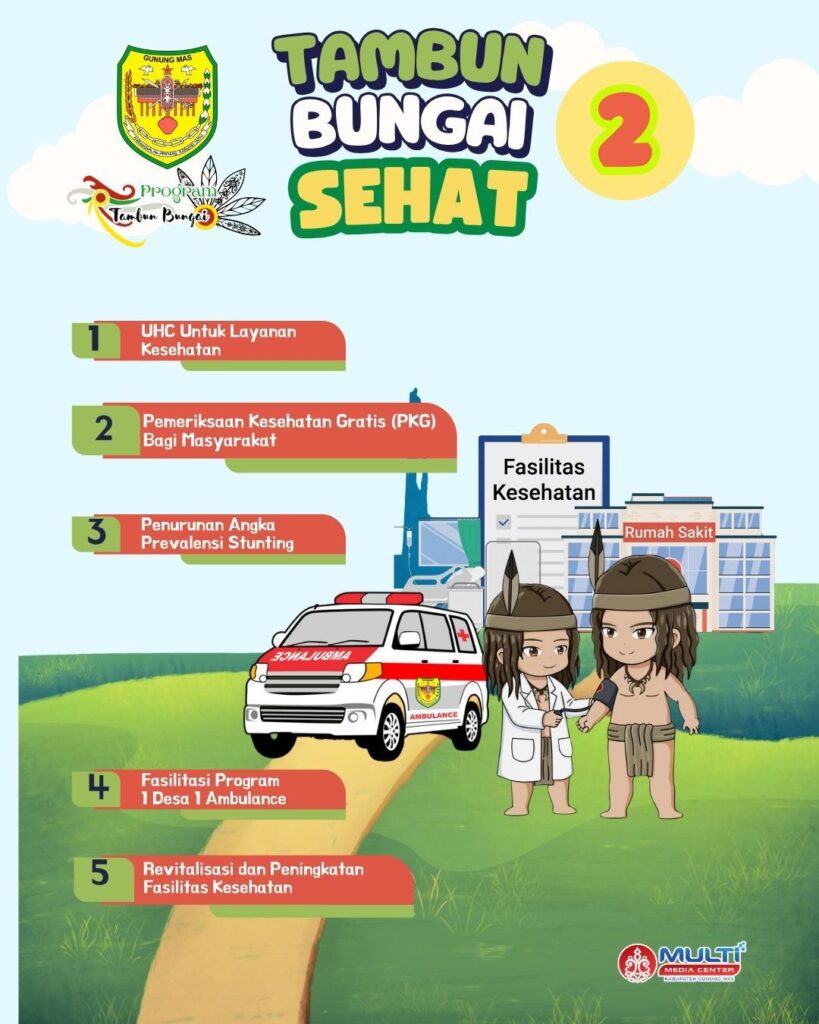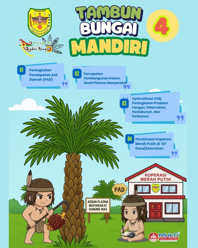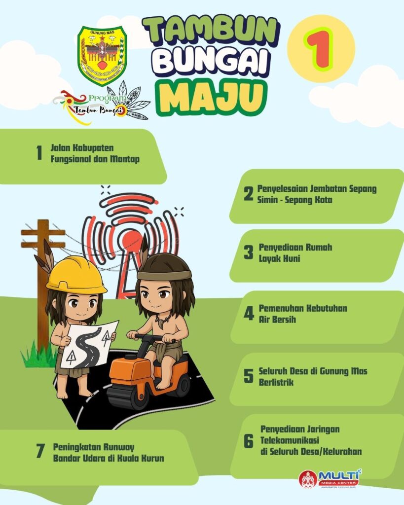 Kuala Kurun, Gunung Mas – Pemerintah Kabupaten Gunung Mas meluncurkan Program Tambun Bungai, sebuah inisiatif pembangunan komprehensif yang dirancang untuk mendorong kemajuan daerah secara menyeluruh. Program ini terbagi ke dalam lima pilar utama: Tambun Bungai Maju, Sehat, Cerdas, Mandiri, dan Bermartabat. Masing-masing pilar mencerminkan fokus pembangunan yang terintegrasi, berkelanjutan, dan berakar pada potensi serta nilai-nilai lokal.